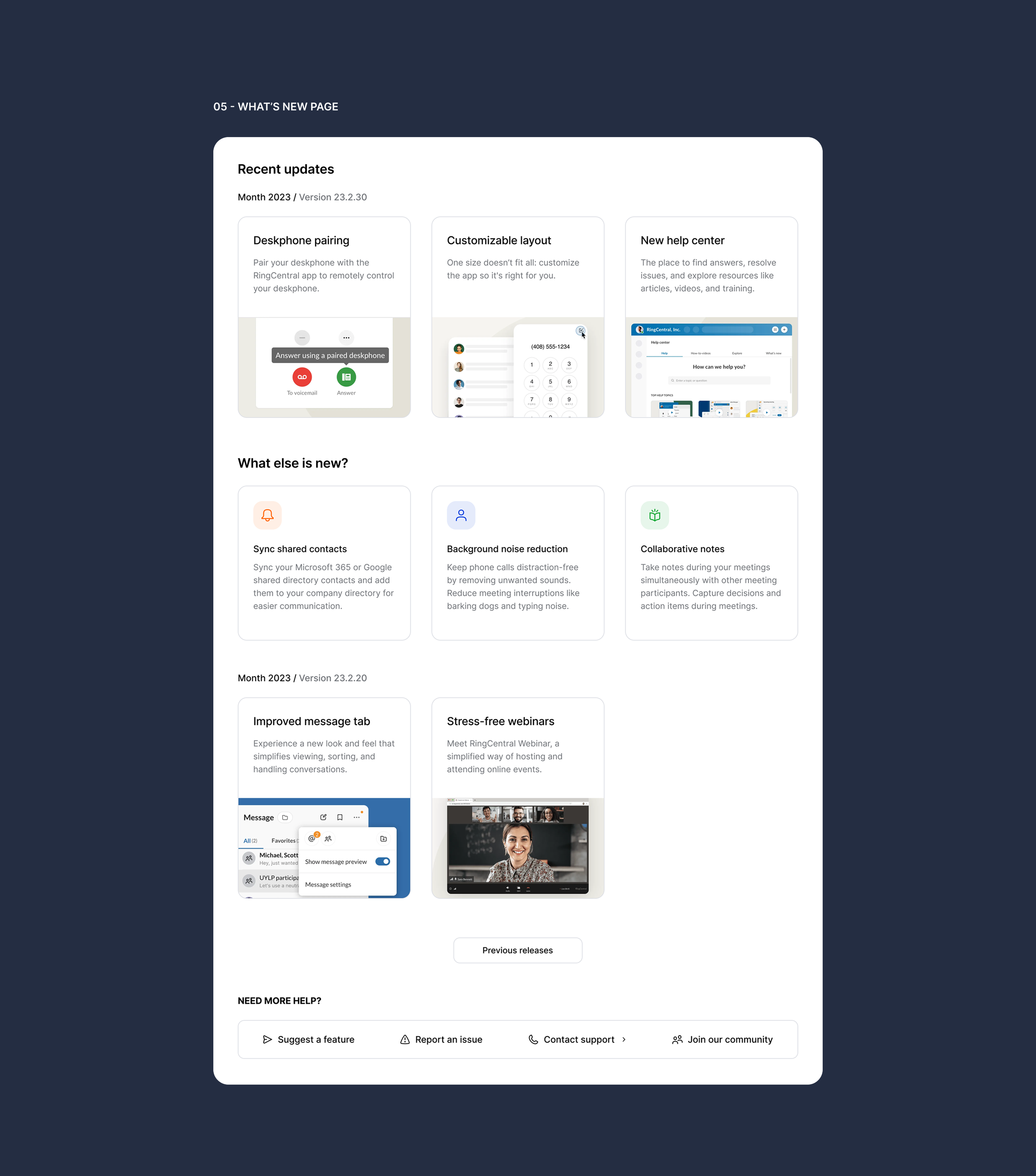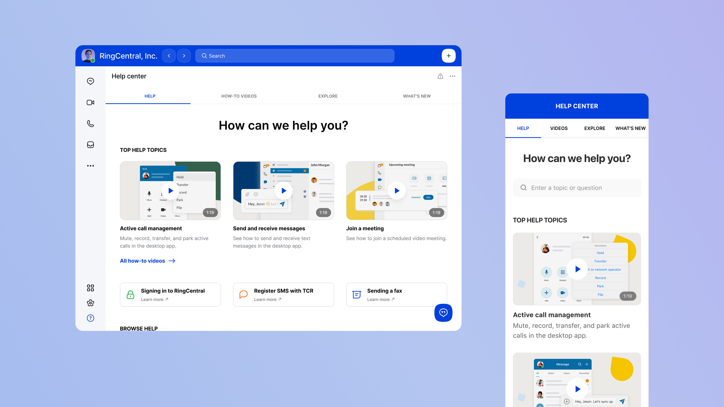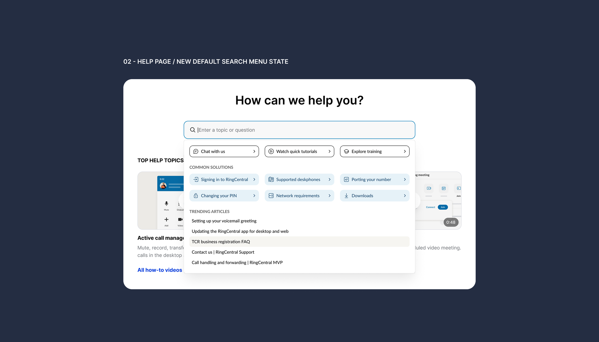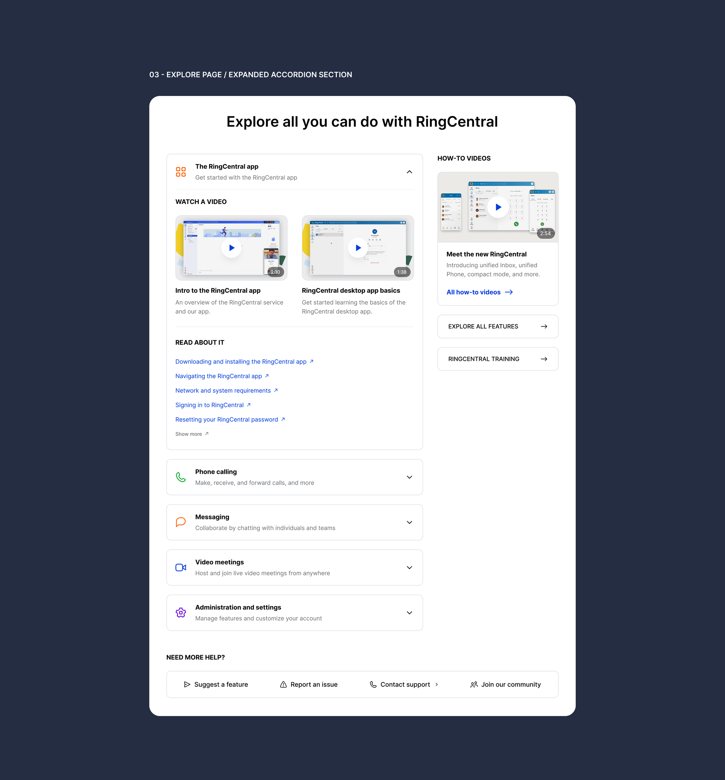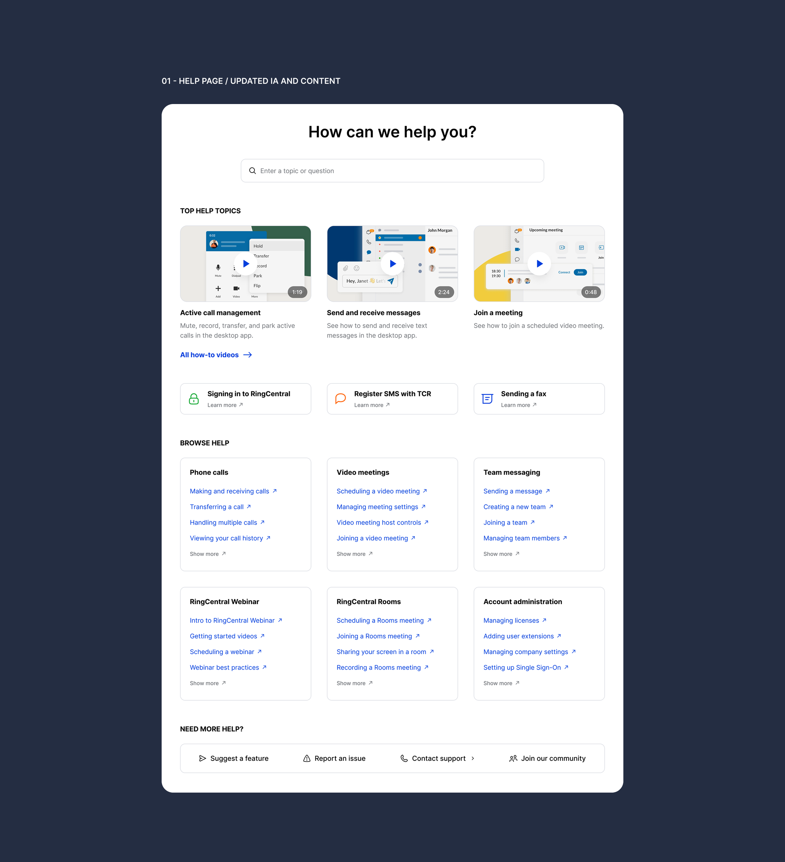 I inherited this project in an unfinished state and continued its development in collaboration with the content team and product stakeholders. This project focused on the in-app help center, embedded directly into the RingCentral application.