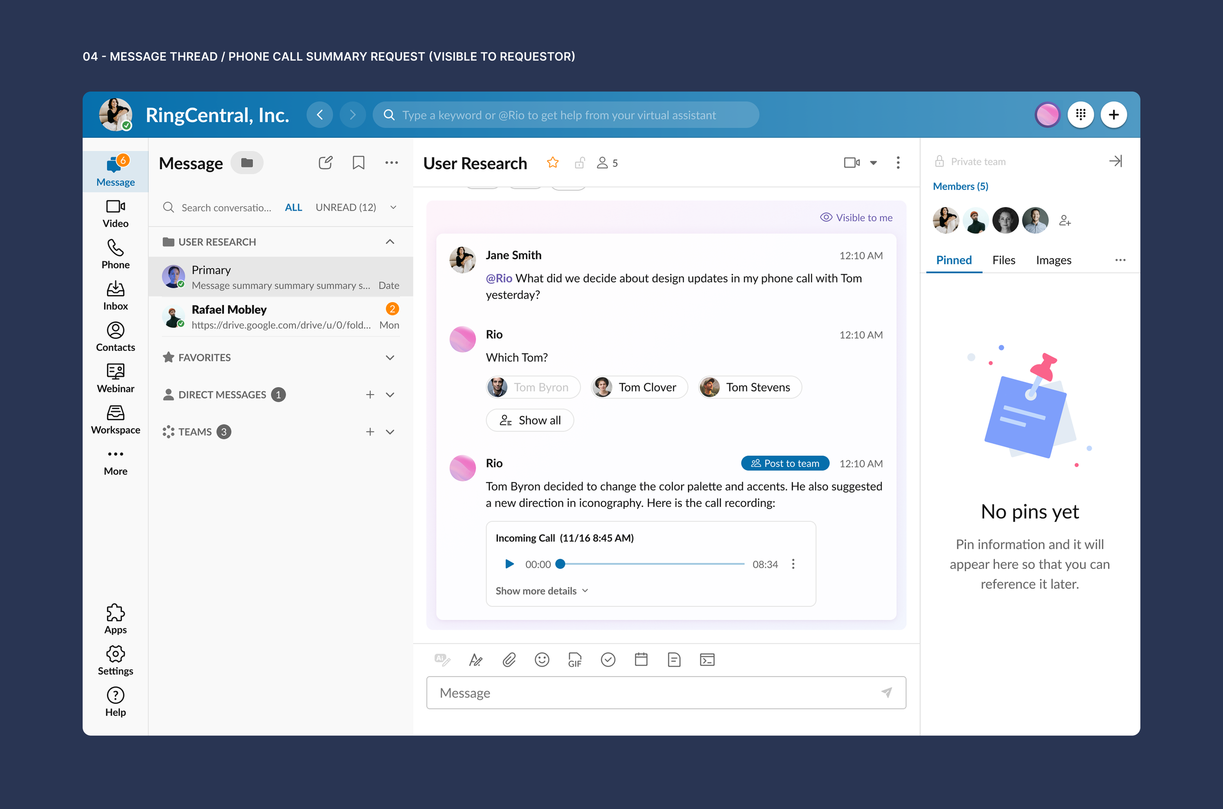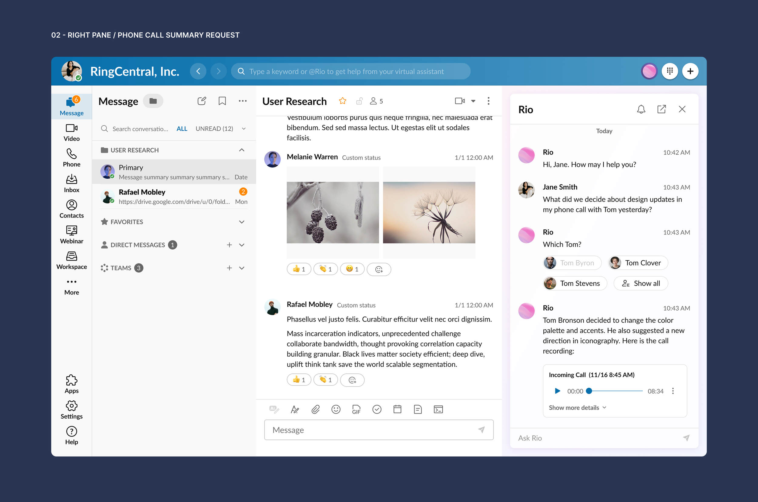 Users often deal with a high volume of meetings, calls, voicemails, and messages. Catching up after meetings or finding specific information across conversations can be time-consuming and cognitively demanding.