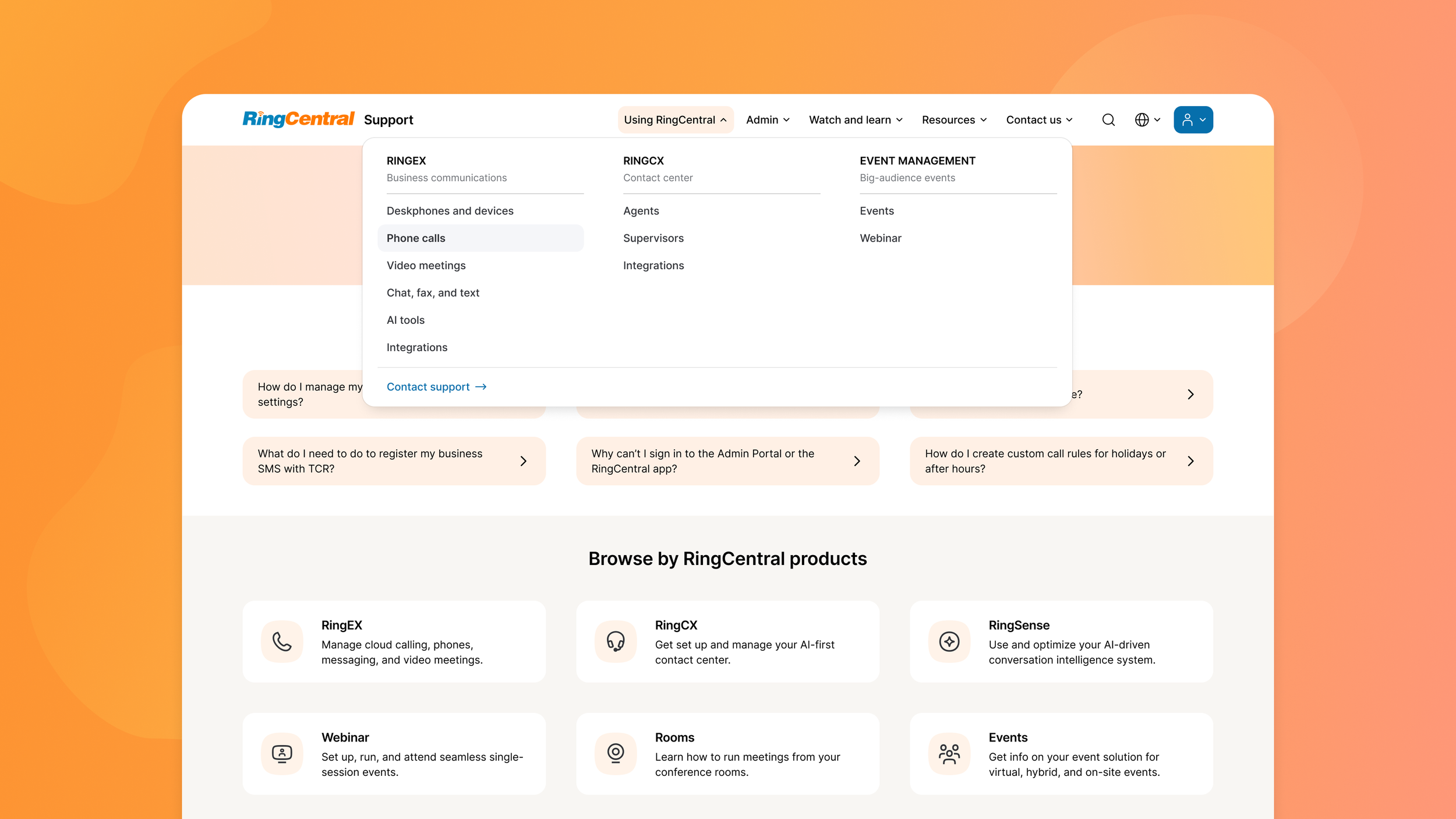 RingCentral support website is a comprehensive knowledge and self-service platform designed to help users resolve issues, learn product functionality, and access educational resources.