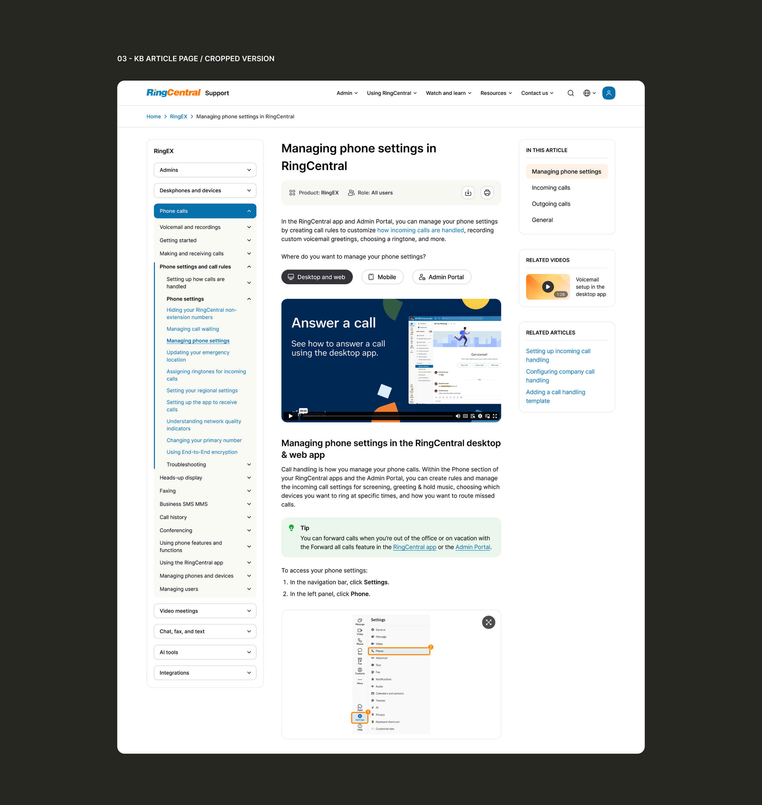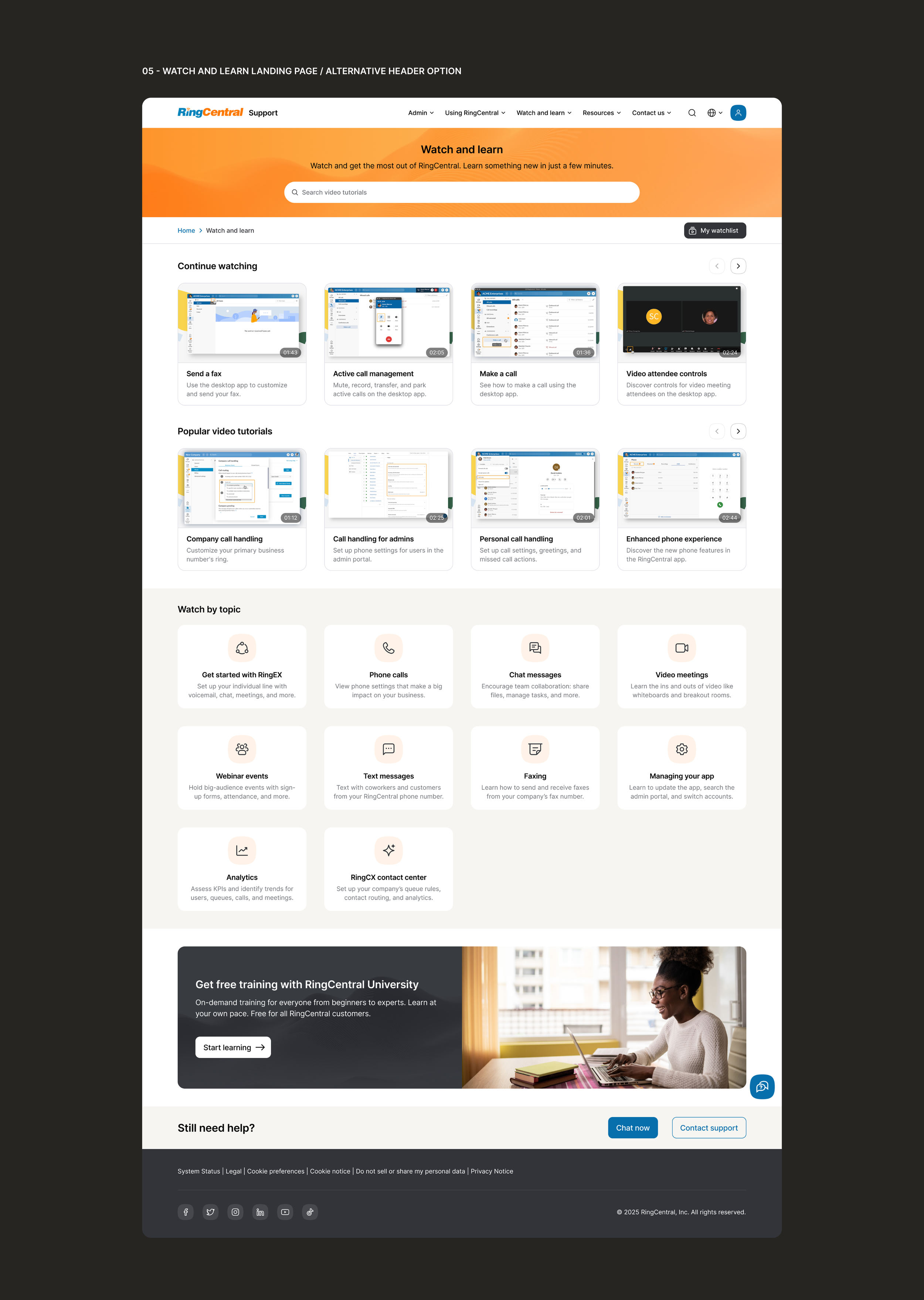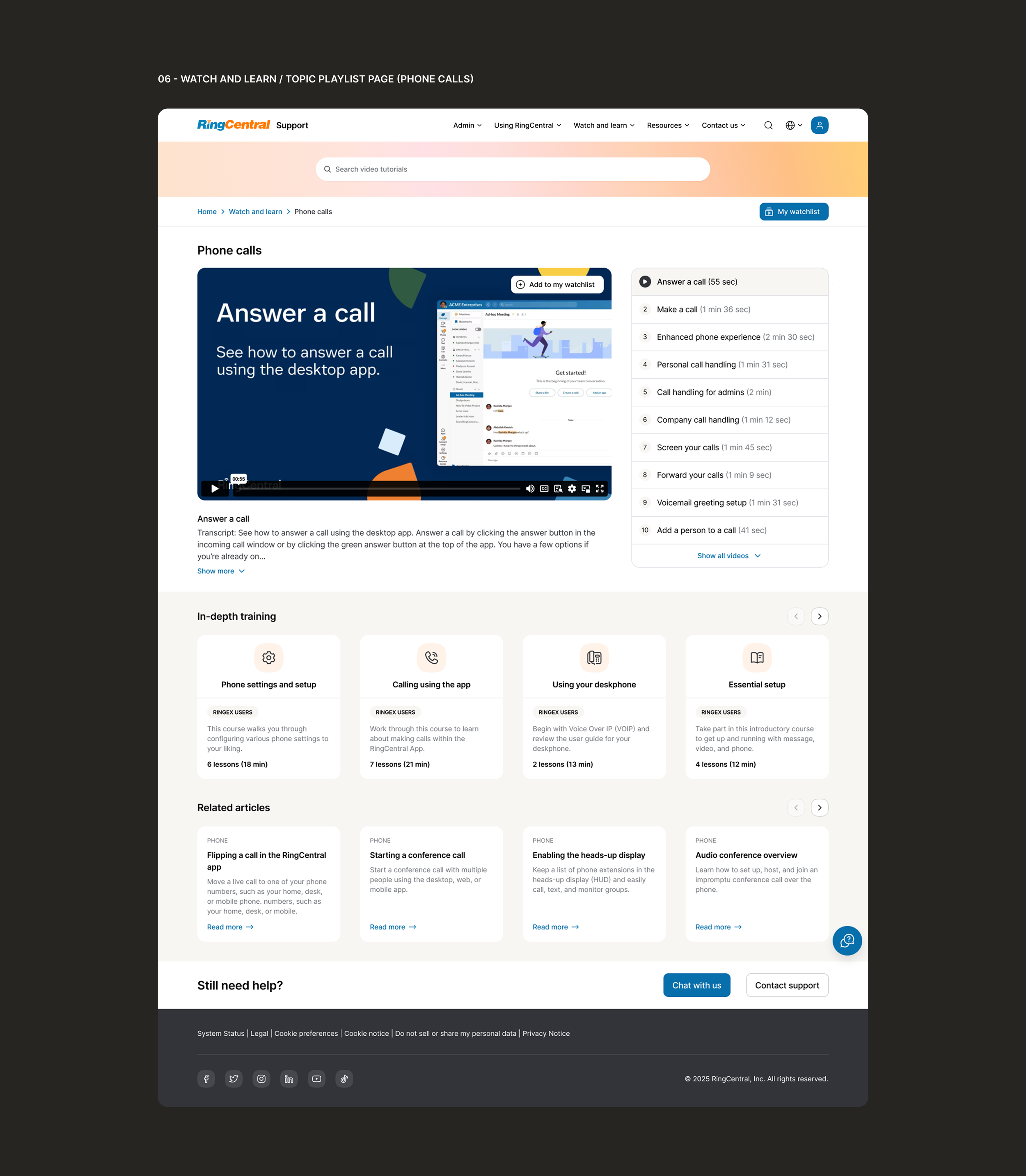Integrating RingCentral University into the support ecosystem enabled users to access self-paced, in-depth product learning.